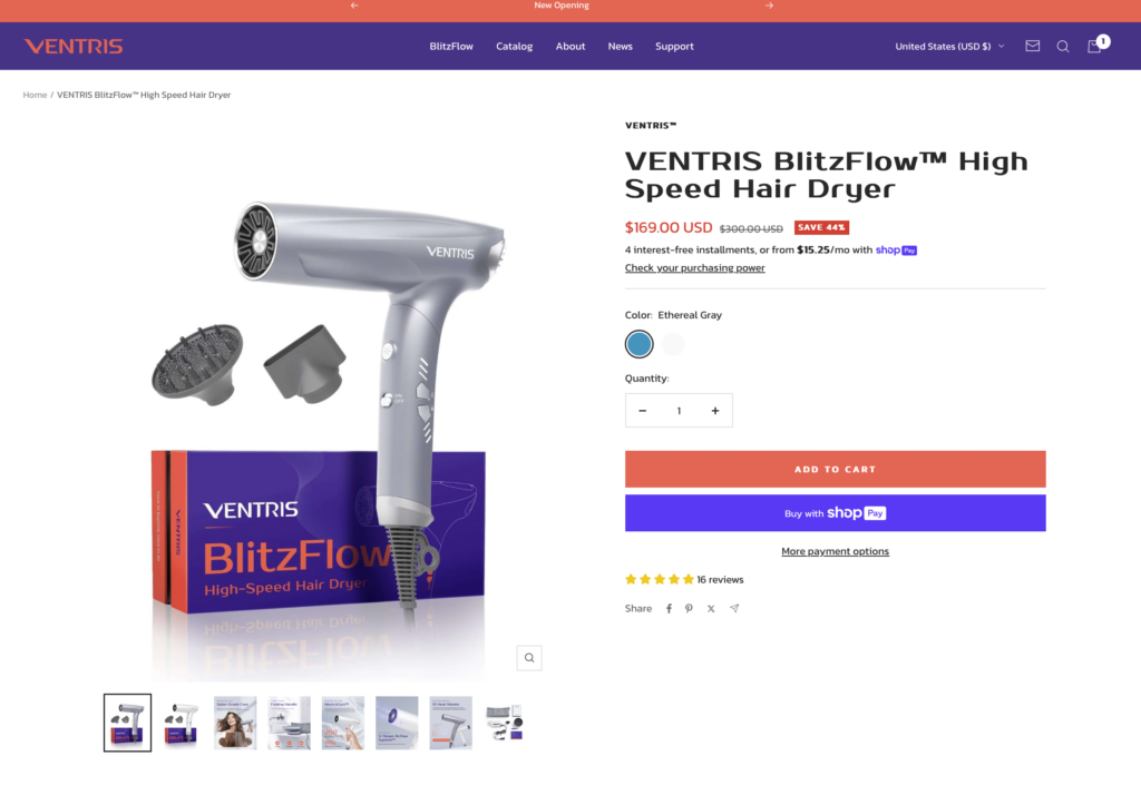 Why not give it a try? Click here to purchase the VENTRIS BlitzFlow High Speed Hair Dryer and elevate your hair care routine today!
